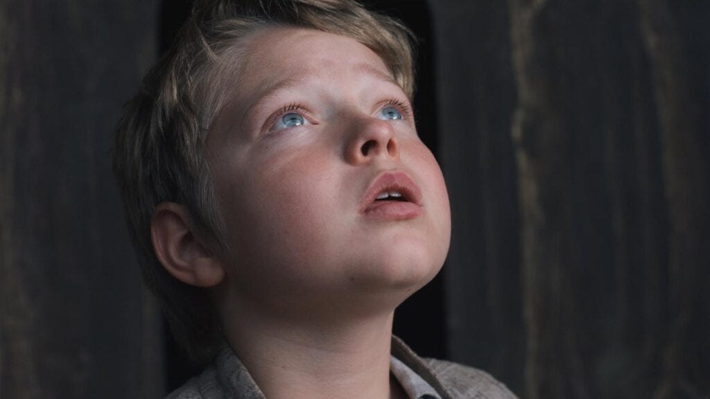 The parents are grief-stricken. That’s what the film is really about: grief. Agnes is in agony and she is angry at Will for not being at home when Hamnet died. Does he even feel grief, or does he just live in his head?